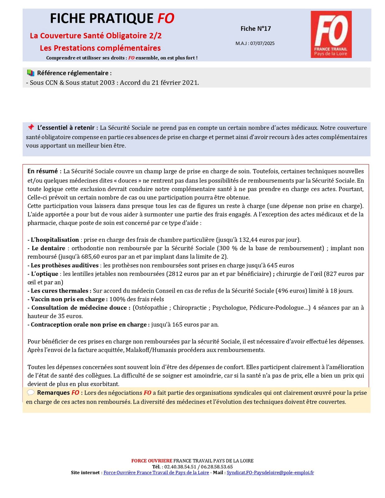 La Couverture santé obligatoire les prestations complémentaires 2/2