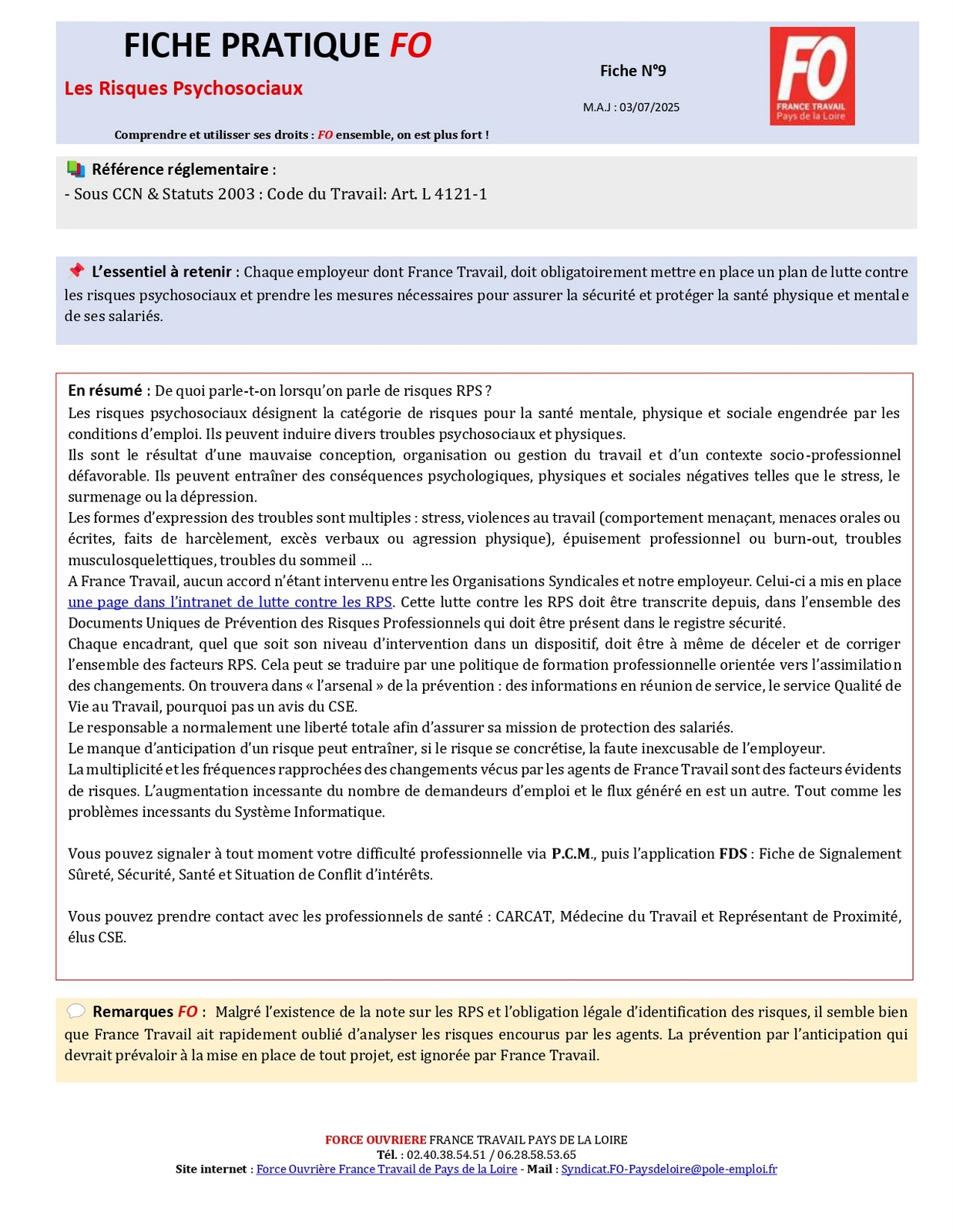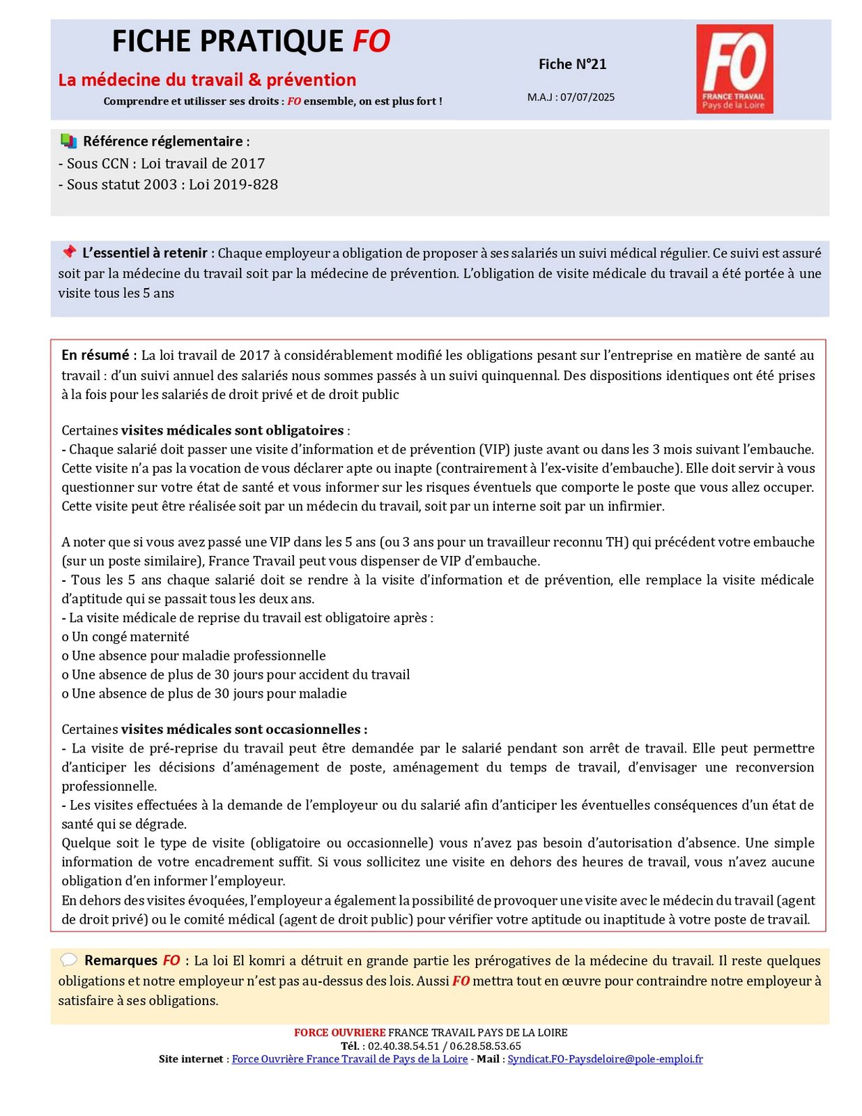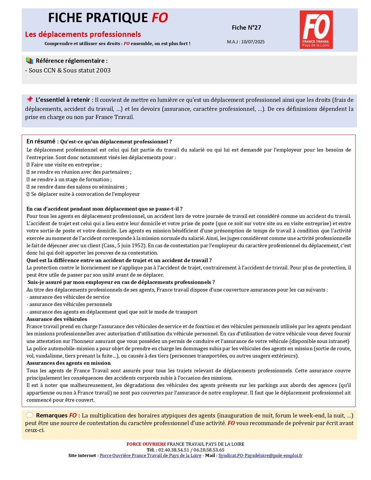 Nous mettons à votre disposition des fiches pratiques pour vous informer simplement sur vos droits et votre quotidien professionnel.