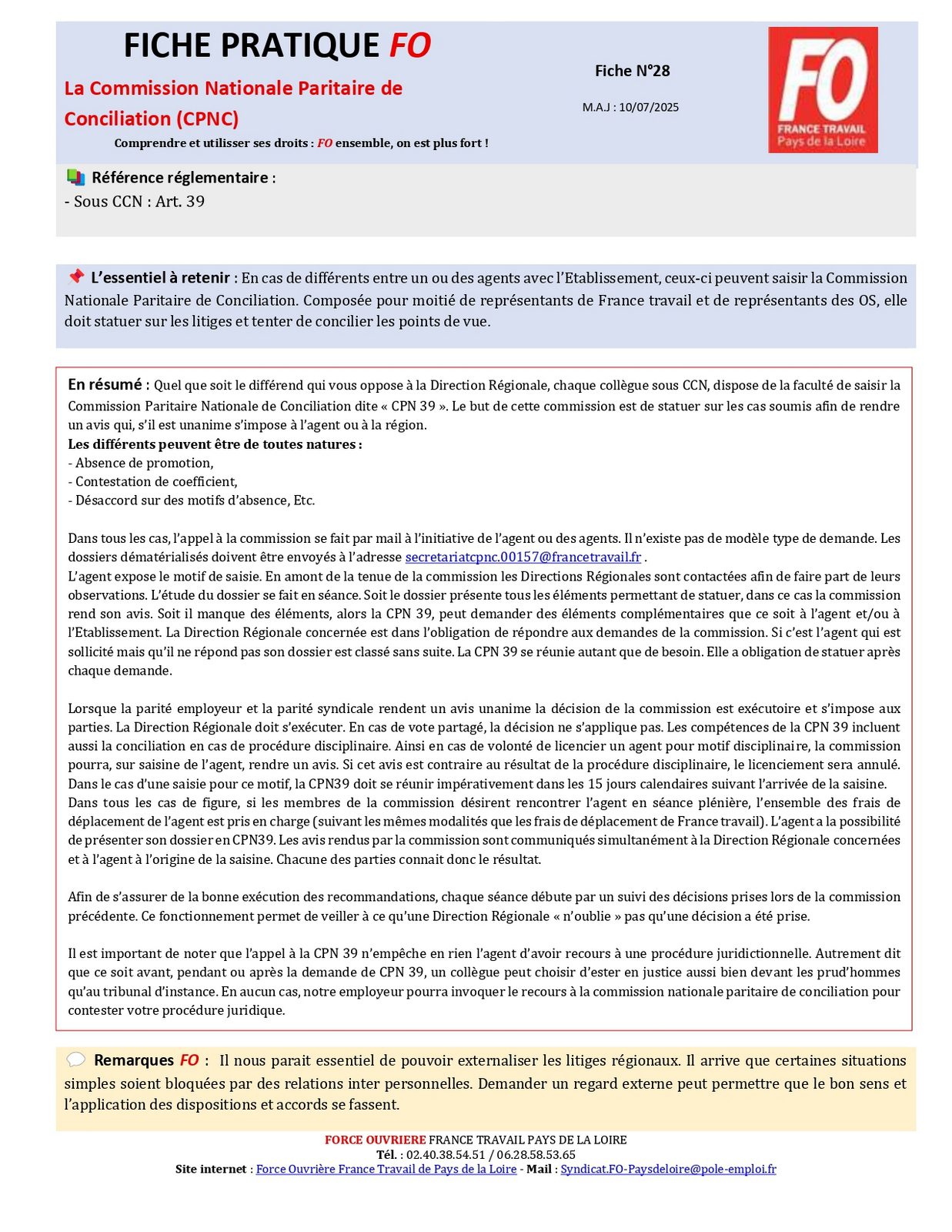 La Commission Nationale Paritaire de Conciliation Art 39 de la CCN